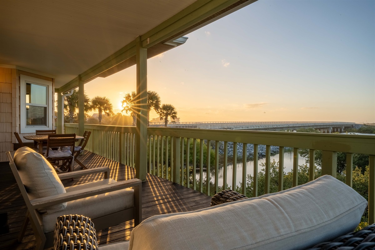 • 3 furnished decks with water + sunrise/sunset views