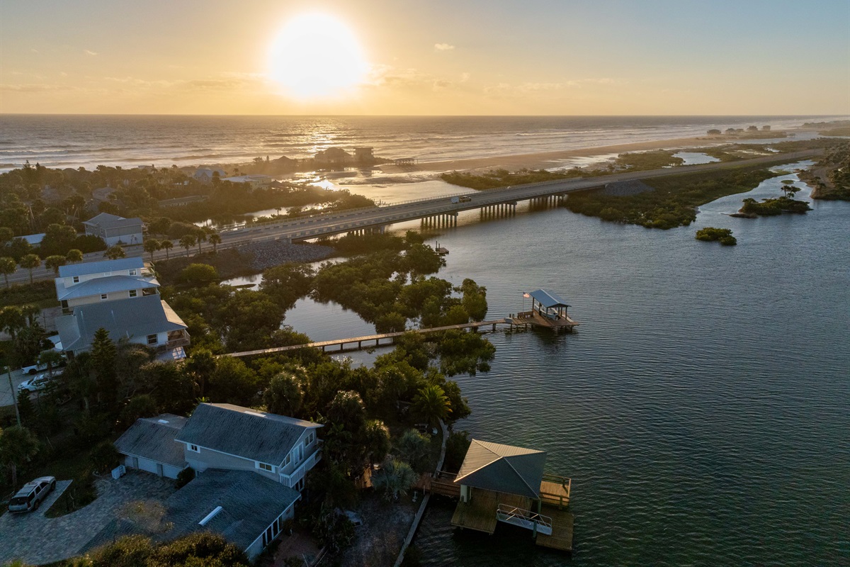 • Expansive second-floor windows overlooking Matanzas Inlet