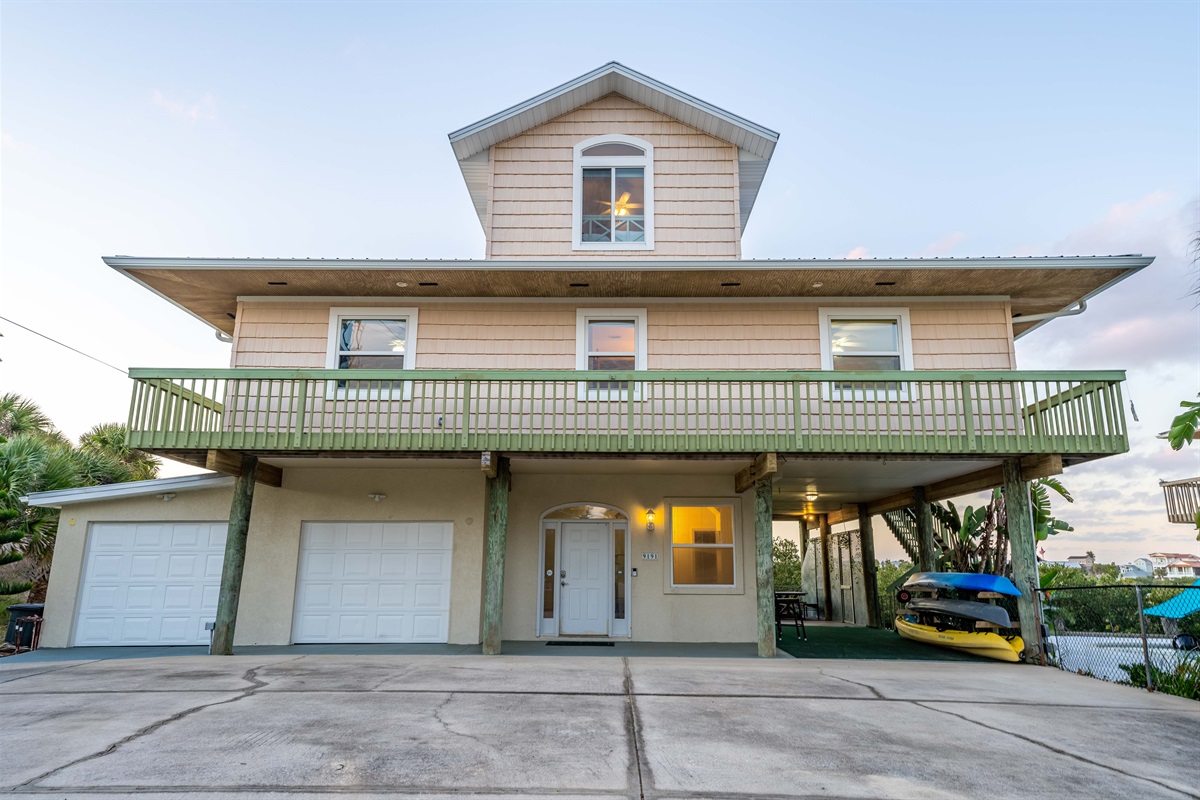 Discover Dolphin Cove, a 3-story waterfront retreat overlooking the Matanzas Inlet. This 4BR, 3.5BA home sleeps 10 and features sweeping water views, 3 outdoor decks, a summer kitchen, fire pit, fishing dock, paddle board, and dog-friendly accommodations. Just steps from the river and a short walk to the beach, enjoy the perfect blend of adventure and relaxation. No unapproved events allowed.