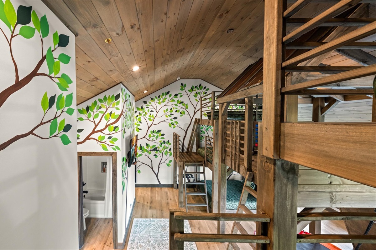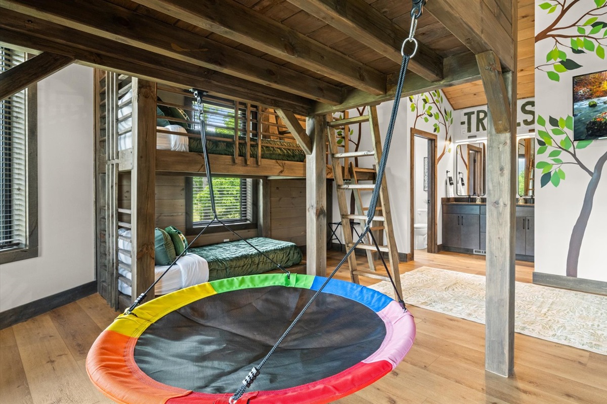 🎠 Kids’ Loft w/ Climbing Wall, Swing, Slide to the 1st Floor