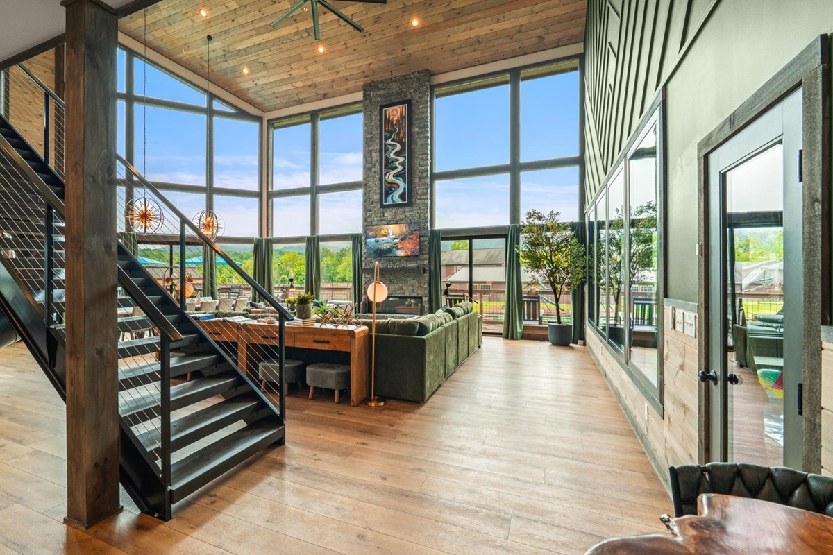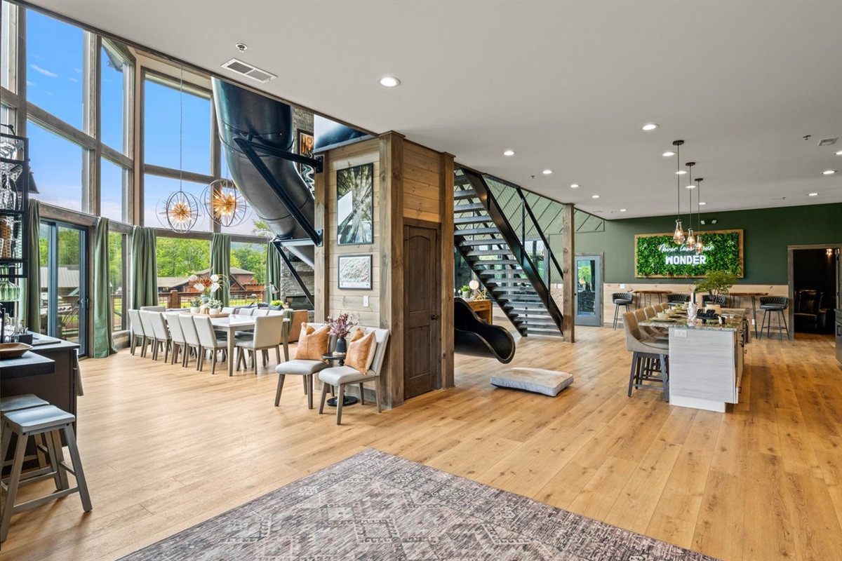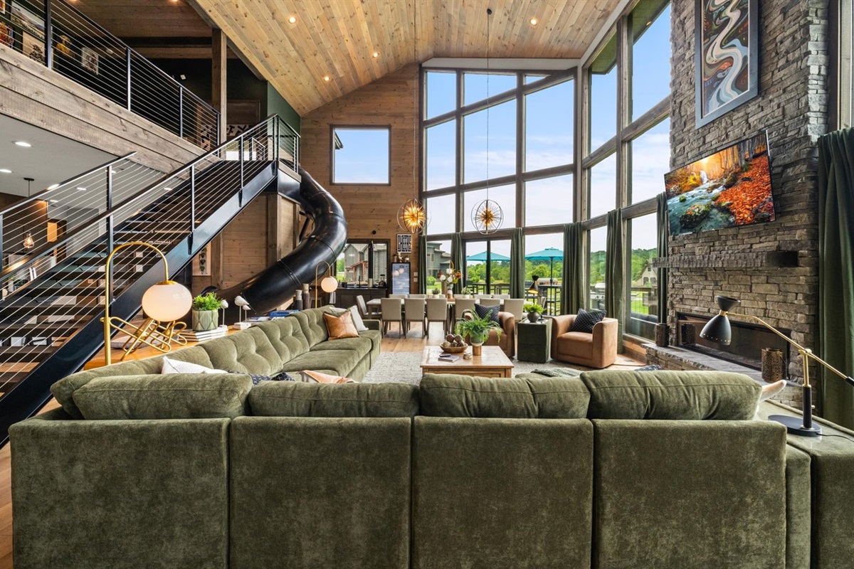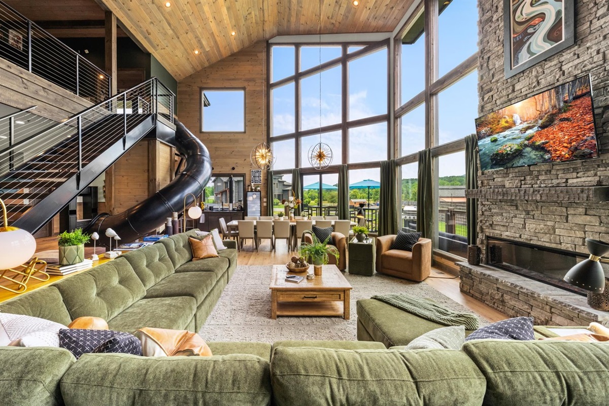 This upscale Wears Valley cabin sleeps 20+ and delivers unforgettable group getaways! Enjoy a private grotto-style indoor pool, duckpin bowling, golf simulator, Peloton gym, arcade, Xbox, theater, and more. With 5 king suites, a custom bunk room, mountain views, and community amenities like pickleball and mini golf — this Wonder Meadows lodge is packed with family-friendly fun and top-tier luxury near Pigeon Forge, Gatlinburg, and GSMNP.
