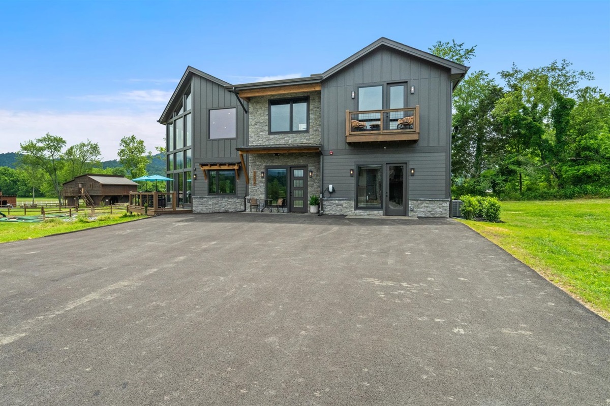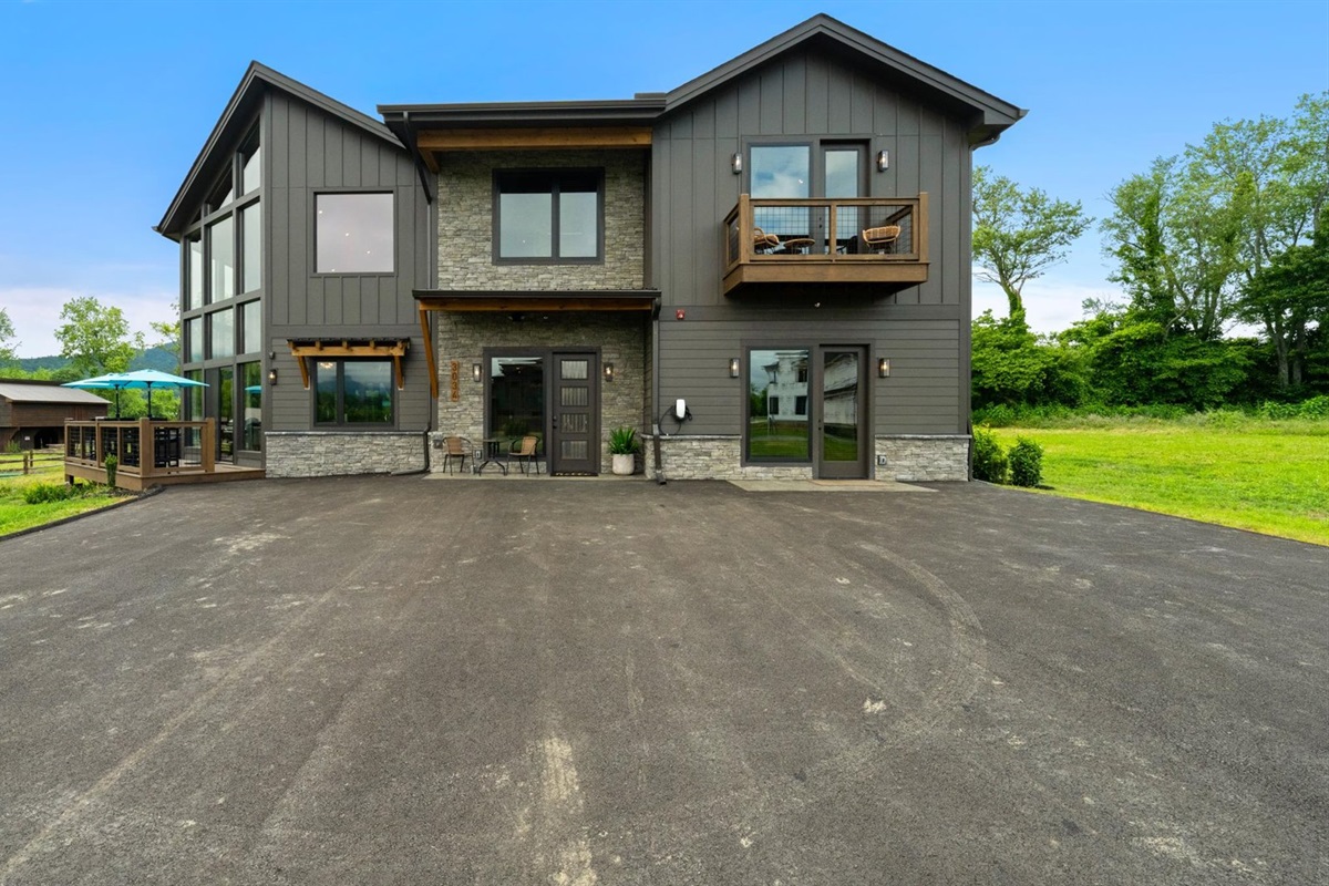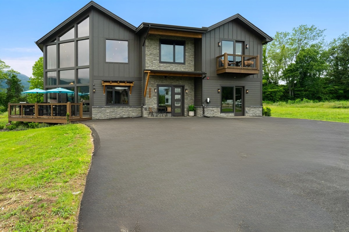 This is a drive-in destination with flat, paved roads and convenient access year-round. The cabin has a Tesla EV charger and ample parking for multiple vehicles, making it ideal for group travel.