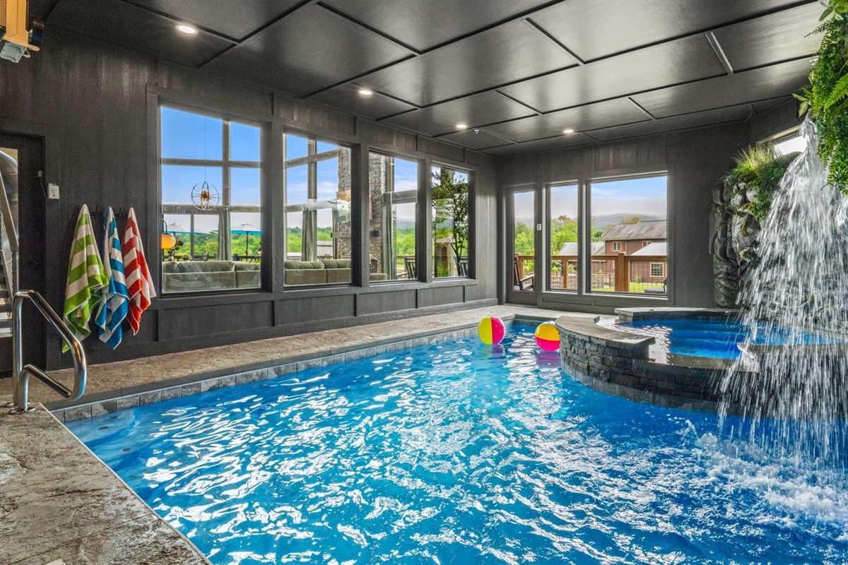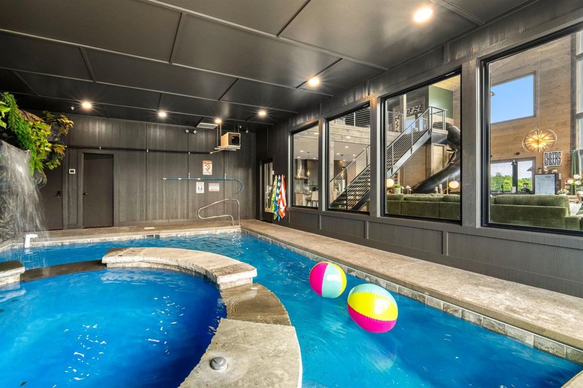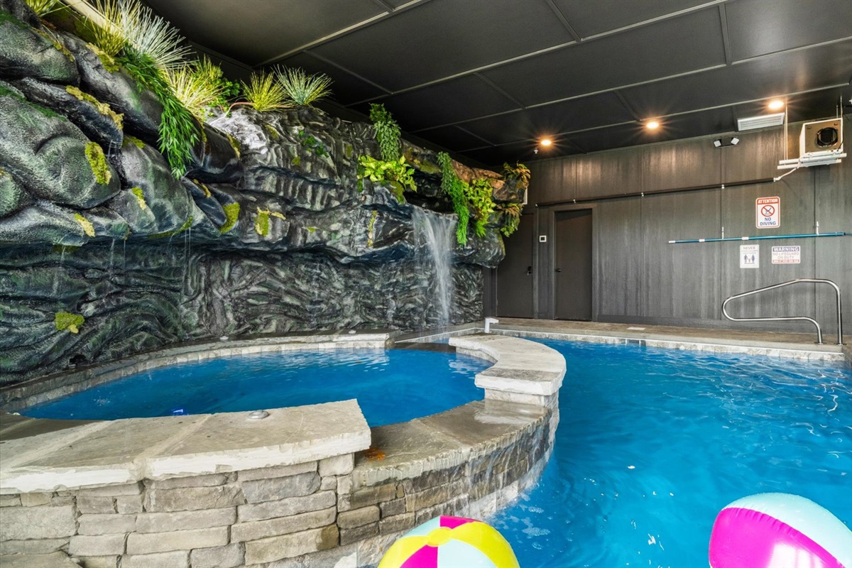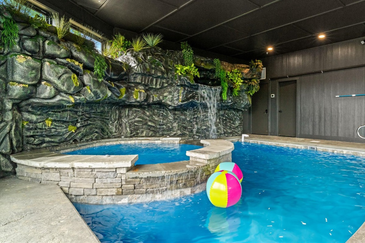 ✅ Grotto-style Indoor Pool + Half Bath
