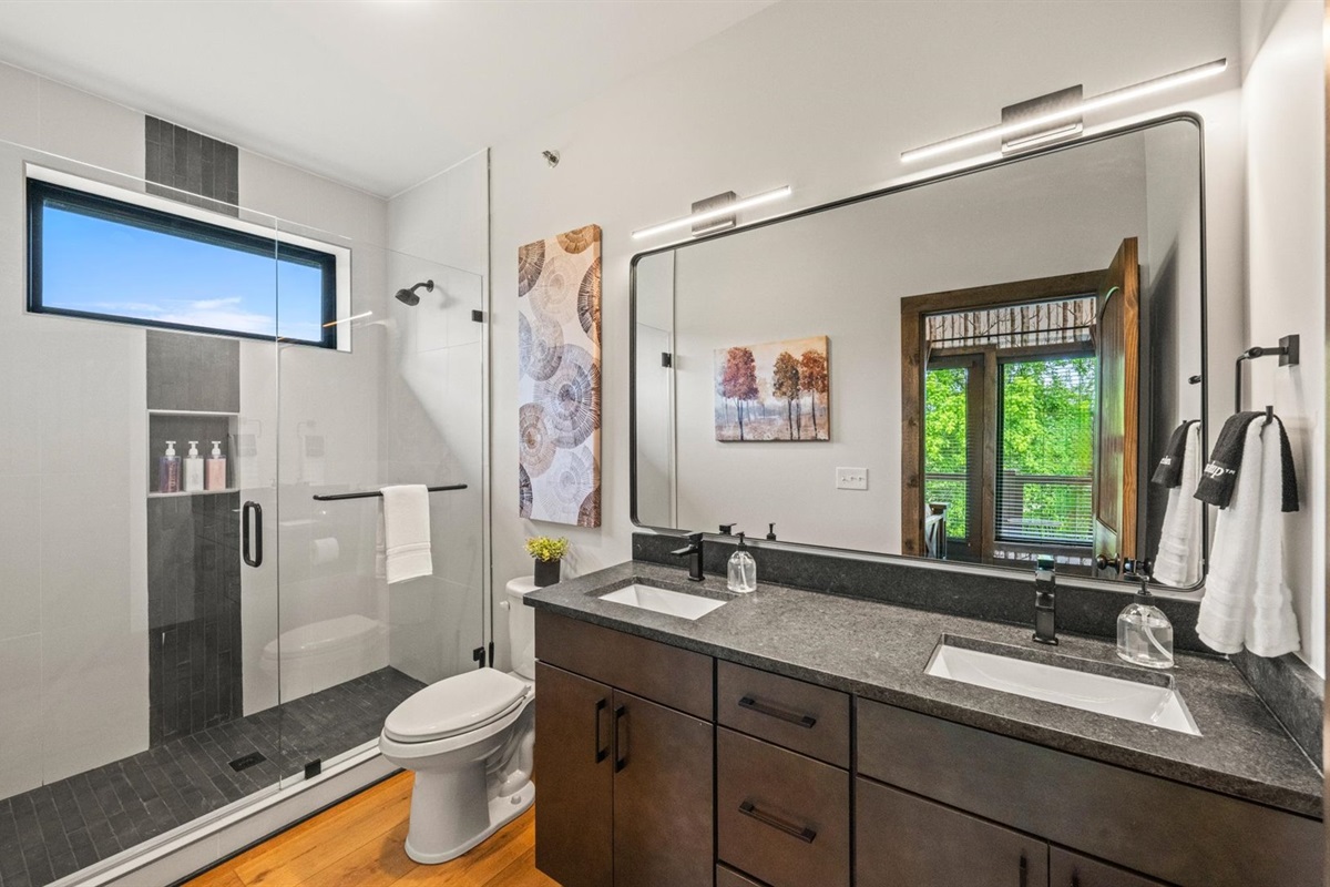 • 2 Full Bathrooms with Shared Double Vanity