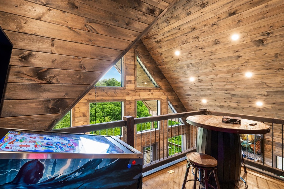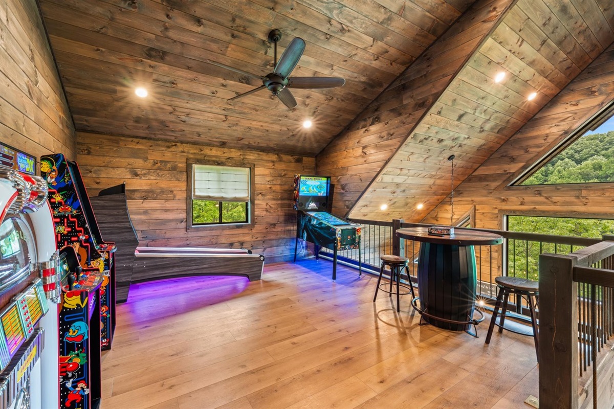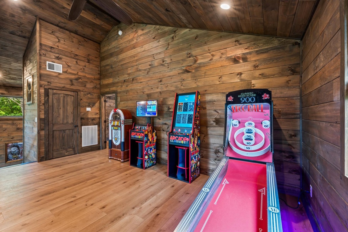 🔵 Open gaming loft with arcade, pinball, skeeball & jukebox