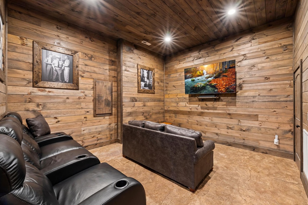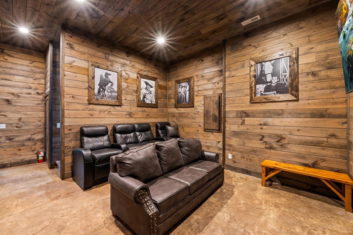 🎬 Theater room with cozy seating + sofa sleeper
