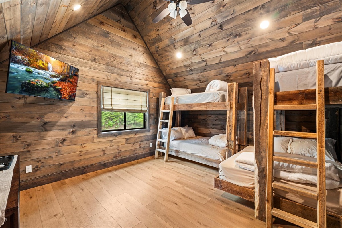 🔵 Bedroom with 2 queen-over-queen bunk beds