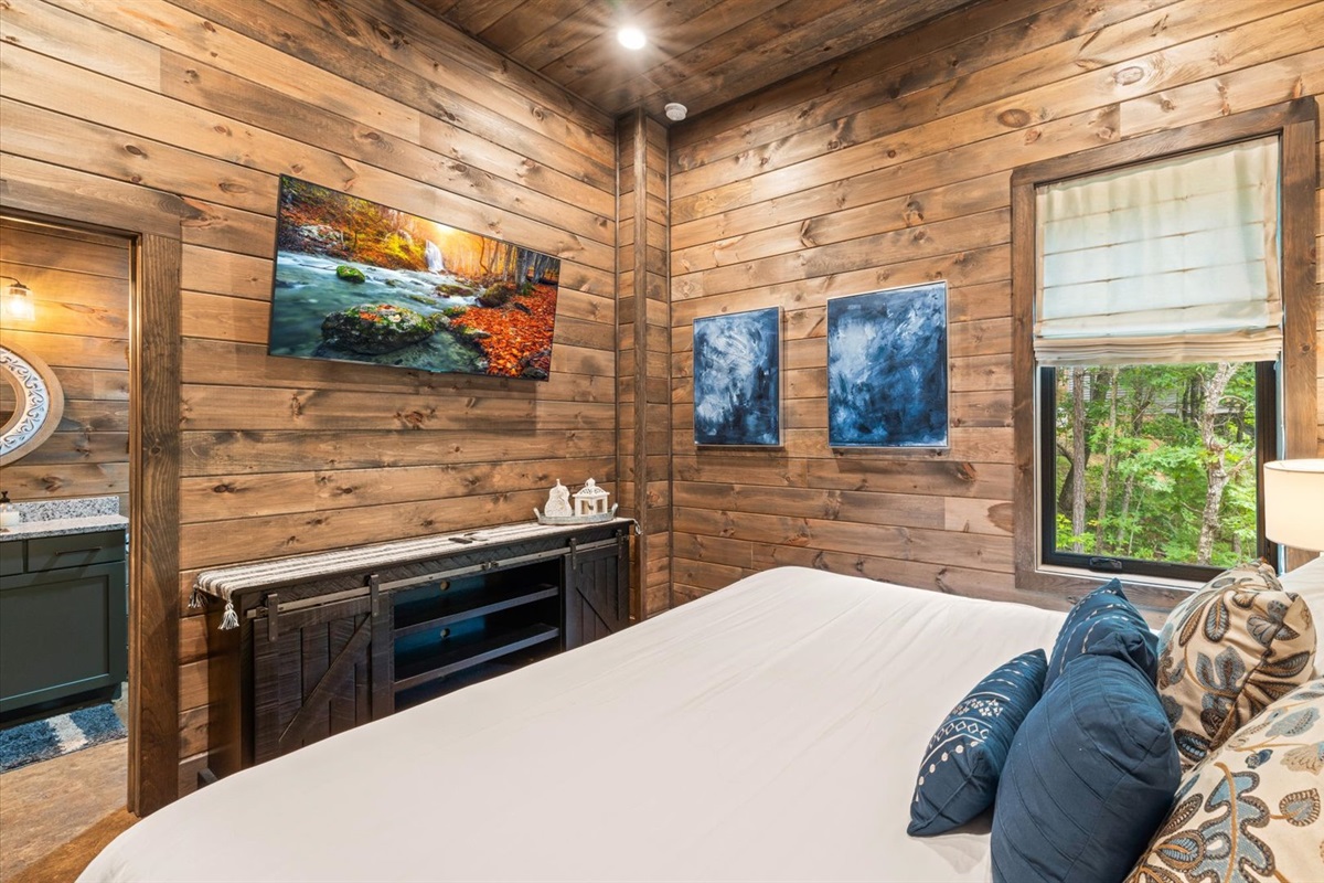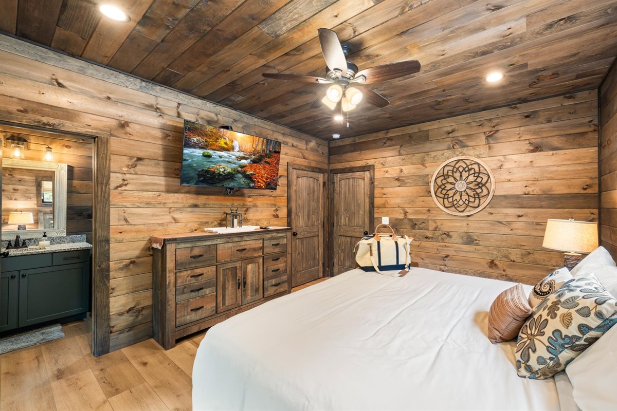 🔵 King bedroom with HDTV & ensuite bathroom