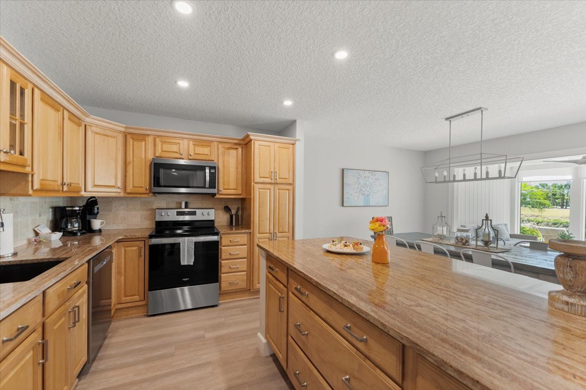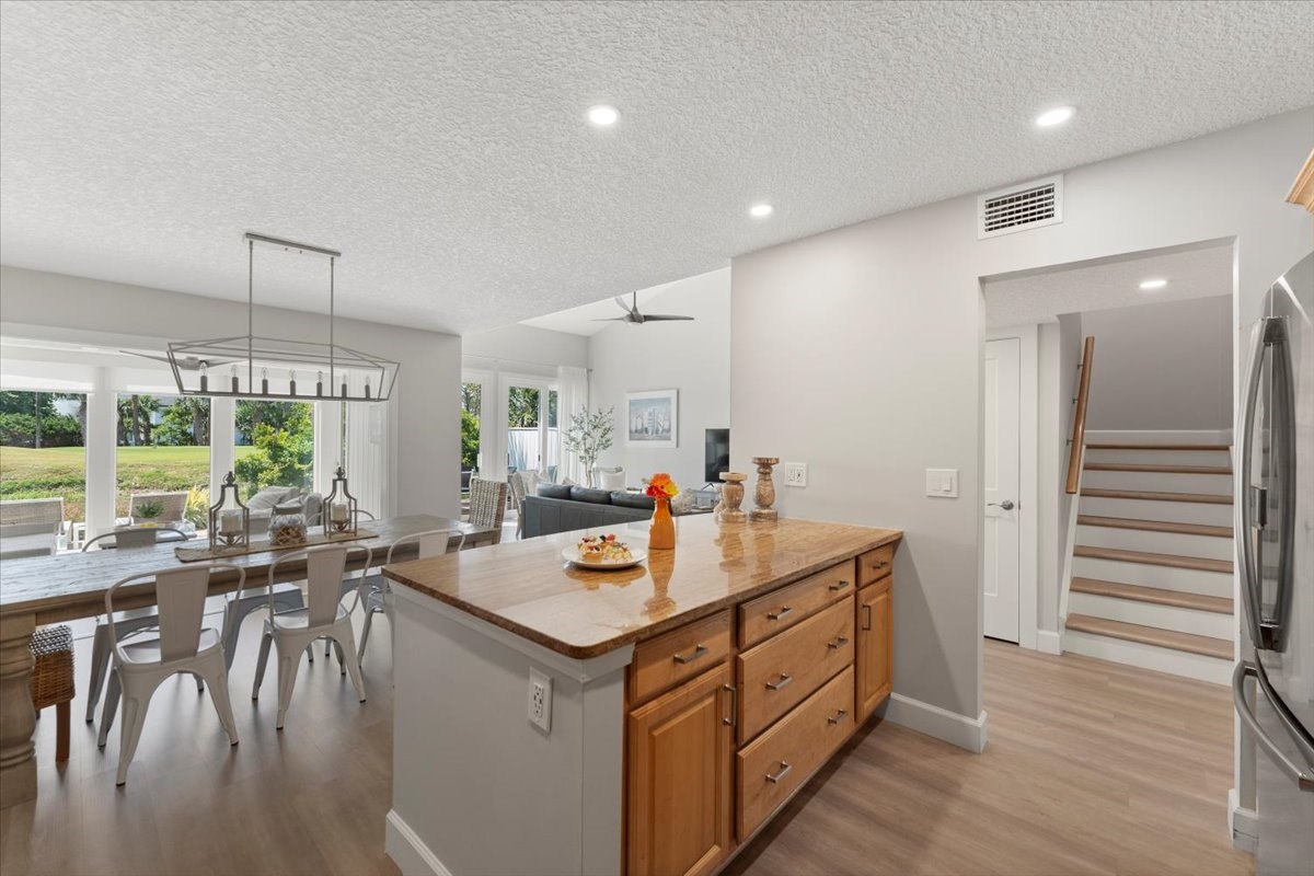 • Sunlit kitchen, open living & dining area with vaulted ceilings