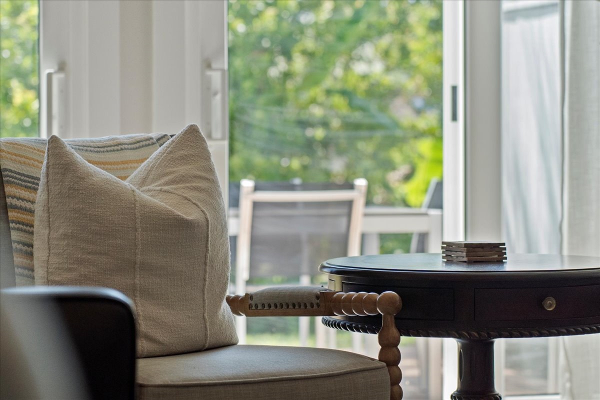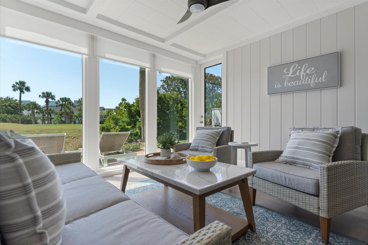• Glass-enclosed sunroom with tranquil views