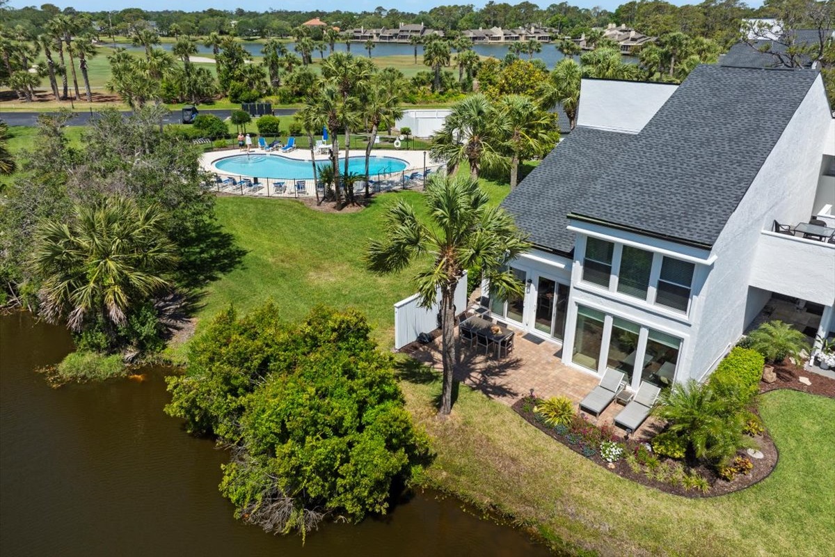 Paved patio overlooking golf course & lagoon