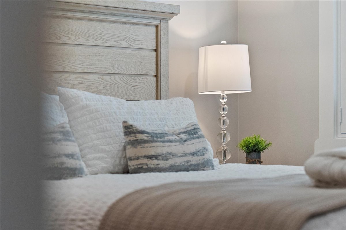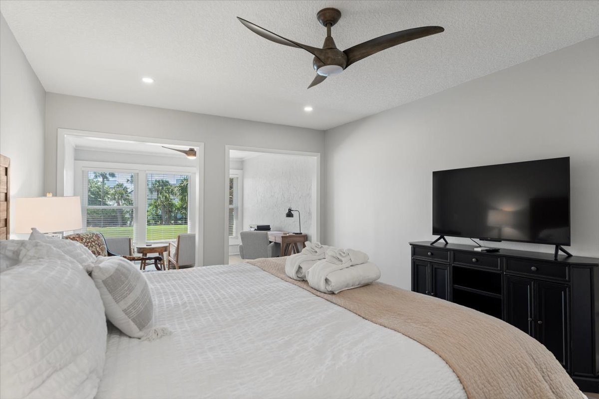 • Primary suite with king bed, walk-in closet, sitting area & water views