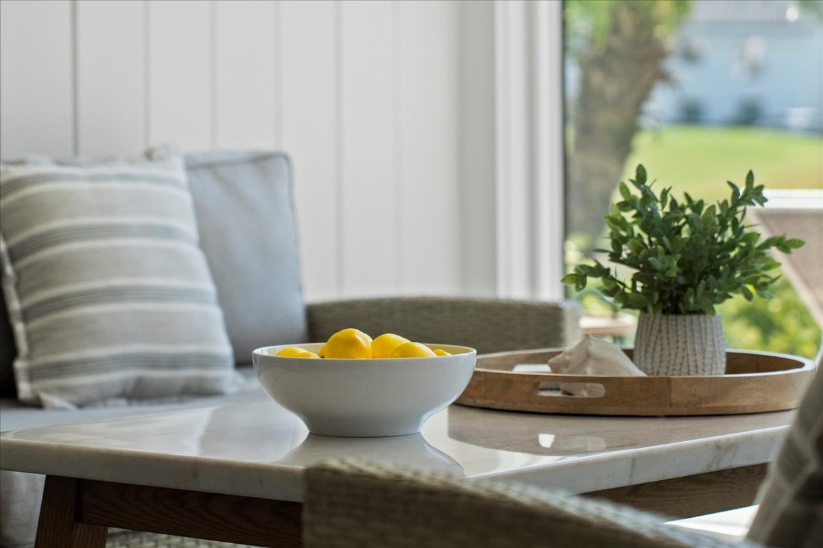Dining for 6, plus a sunroom & patio with lagoon views