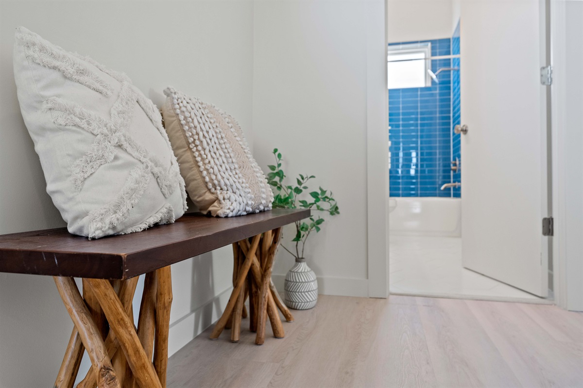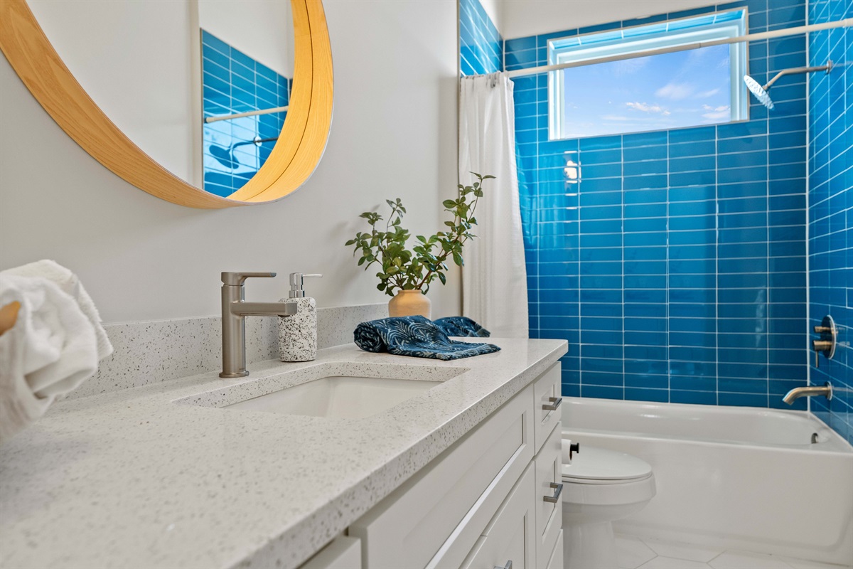 -Modern bathrooms with walk-in showers/tub combo and starter toiletries