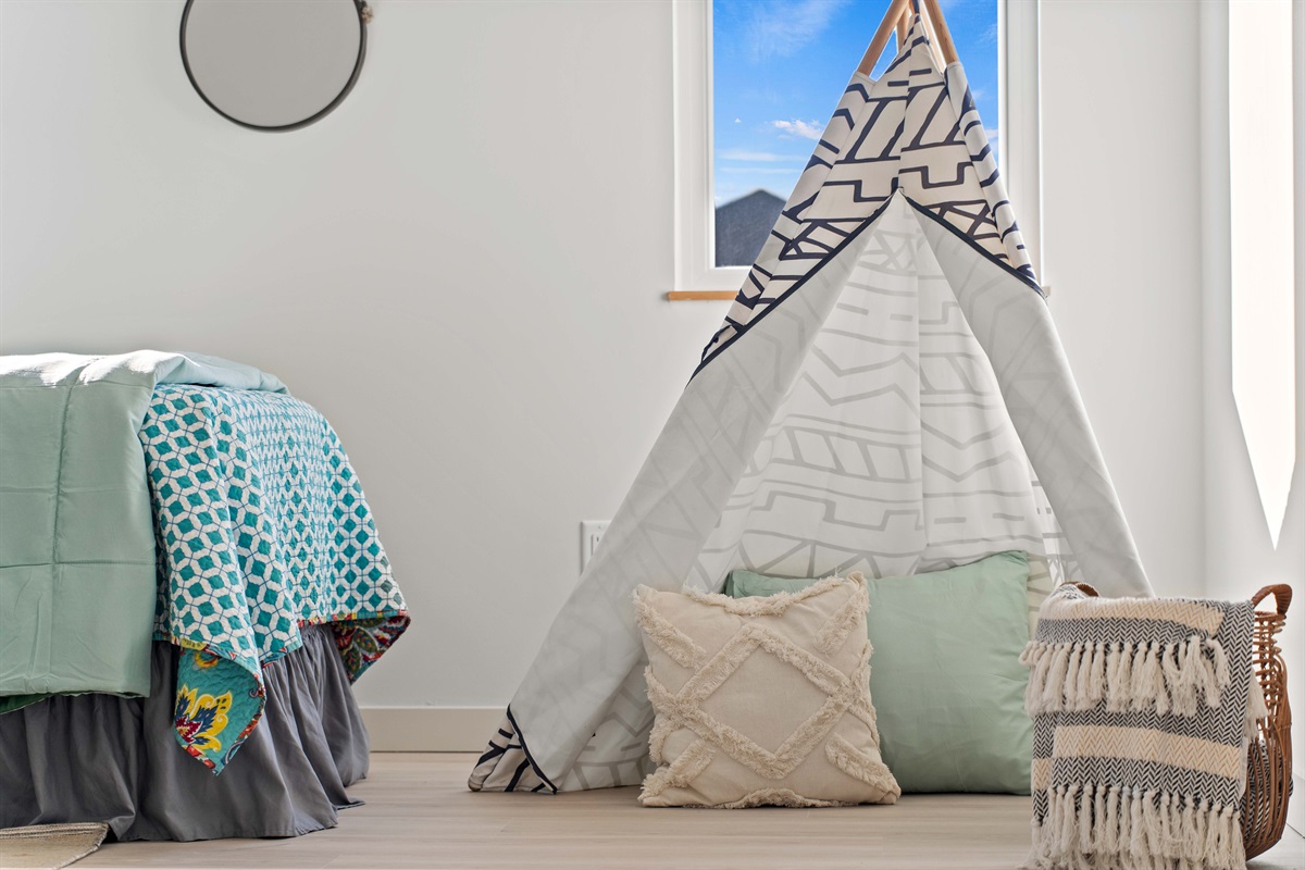 -Cozy upstairs media room with flexible seating for movie nights or reading