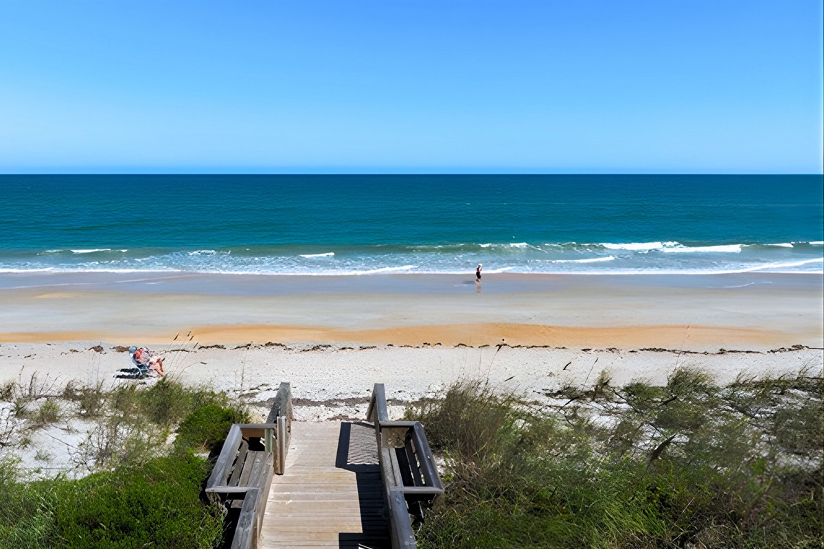 Wake to Atlantic views from your private balcony at this oceanfront 3BR/2BA condo in gated Cinnamon Beach. Steps to the sand via private boardwalk, plus resort amenities: two pools (oceanfront quiet & lakeside family), fitness center, clubhouse, and game room. Inside: king suite (soaking tub + shower), queen room, bunk room, full kitchen, smart TV, fast Wi-Fi, washer/dryer, elevator access, and free gated parking for 2. Minutes to St. Augustine and Flagler. Pets Allowed.