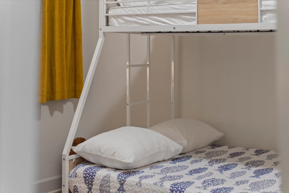🛏 Bedroom 3: Bunk room with twin/full bunk bed and trundle