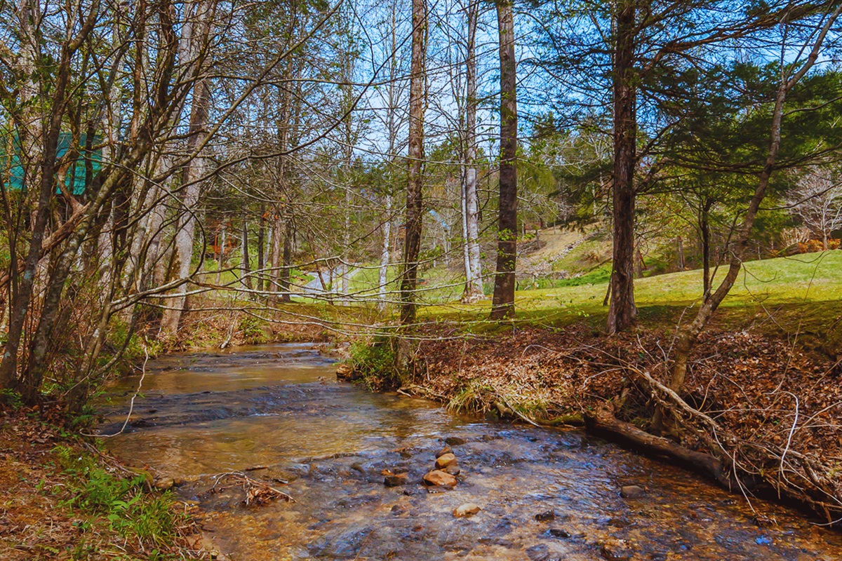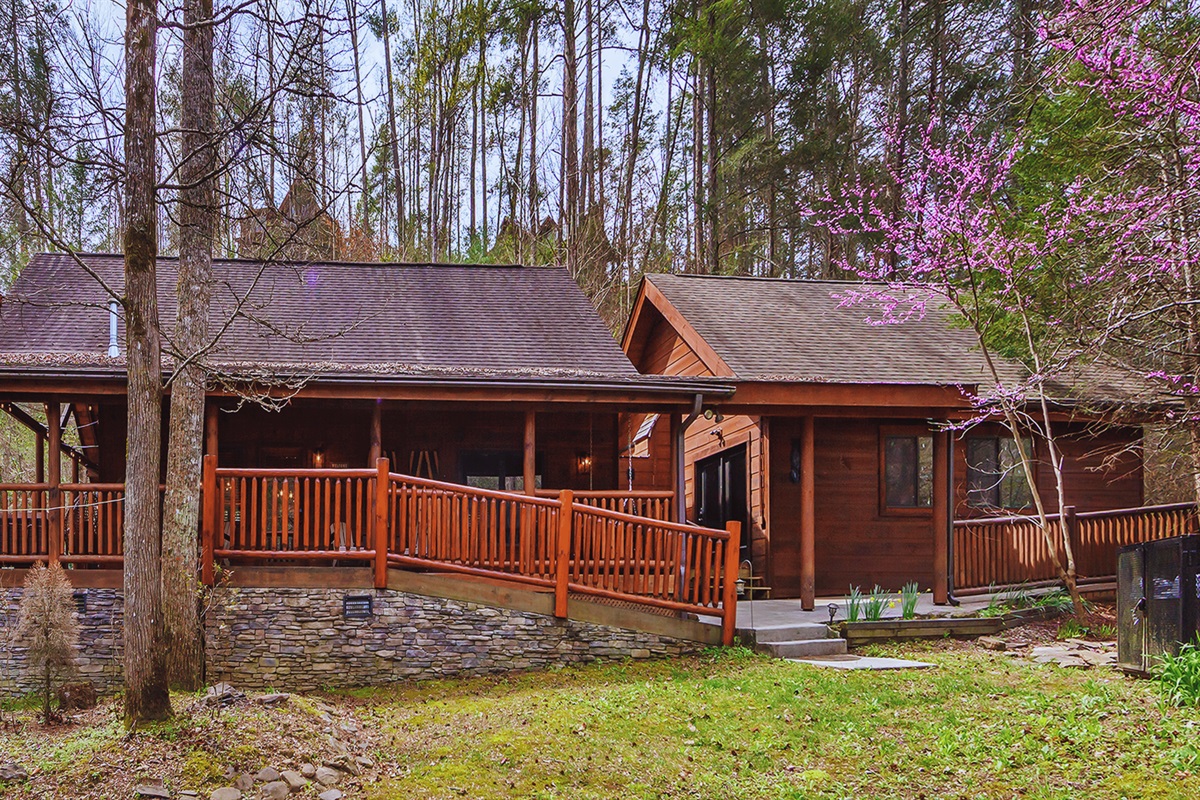 Retreat to this peaceful, creek-side cabin! Enjoy the private indoor pool , or sit out in the hot tub and enjoy nature. Sit out by the fire at night, roast marshmallows and enjoy the peaceful nature of the mountains. Featuring 2 king bedroom with ensuites and full-sized kitchen. Cedar Falls Resort Amenities include outdoor pool, catch and release fishing pond, sports court and nature trail.