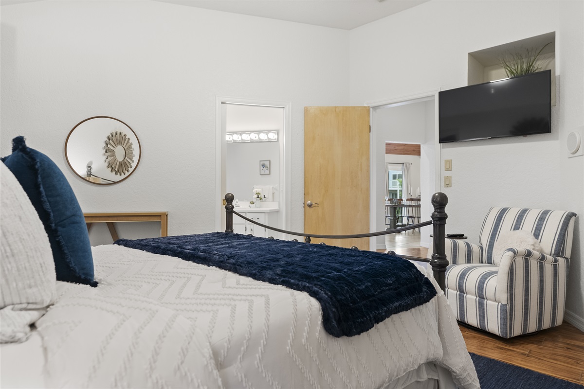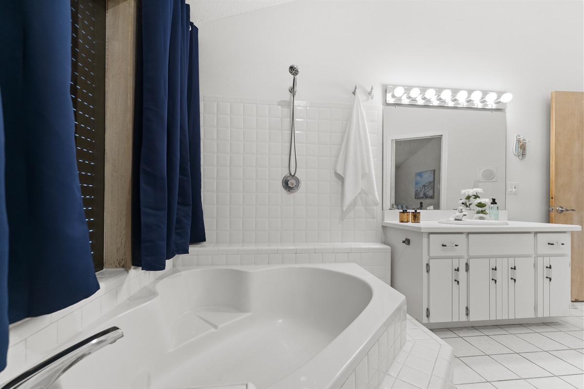 -Primary bedroom with queen bed and ensuite bathroom (soaker tub, single sink)