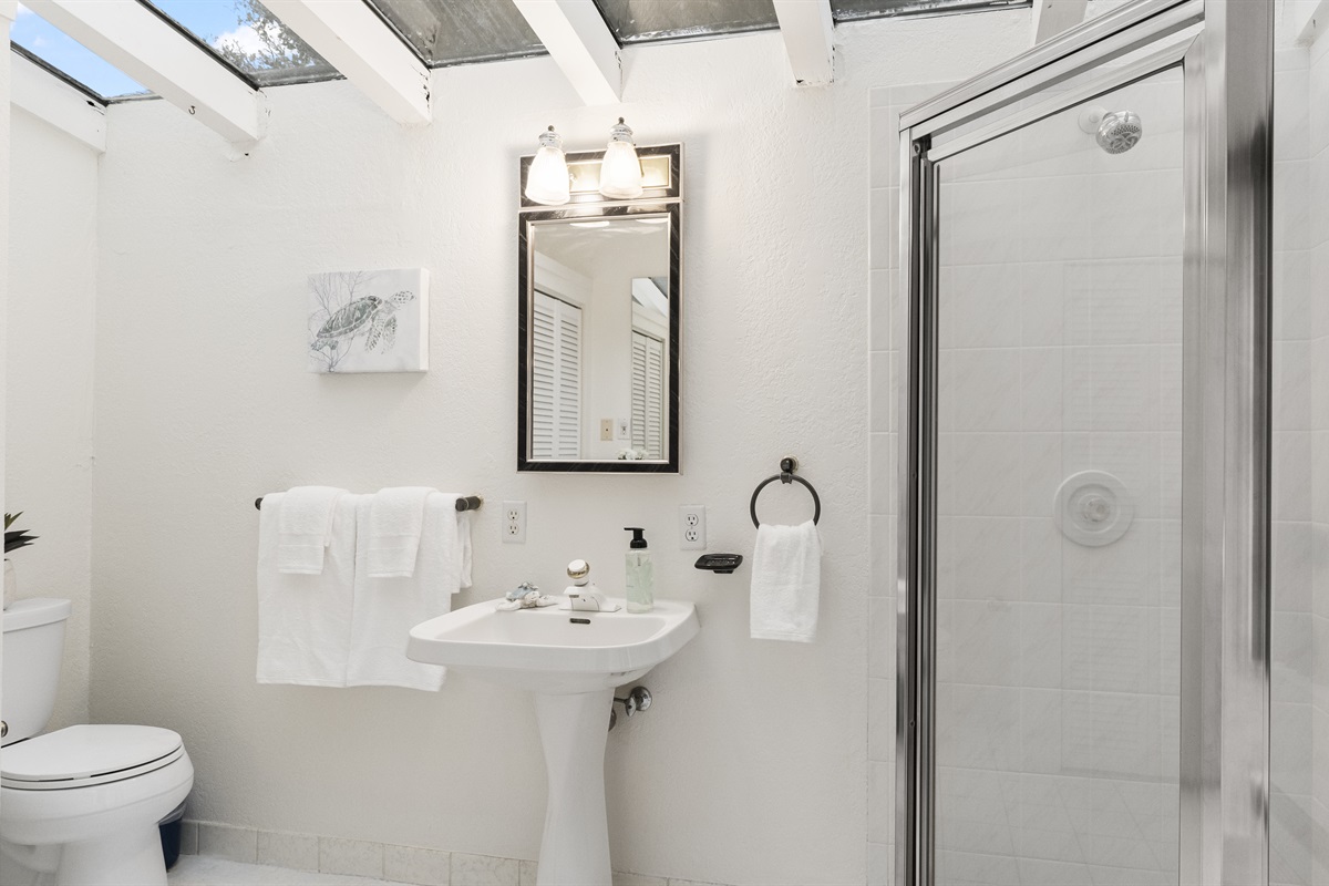 -Full bathroom with sink and shower