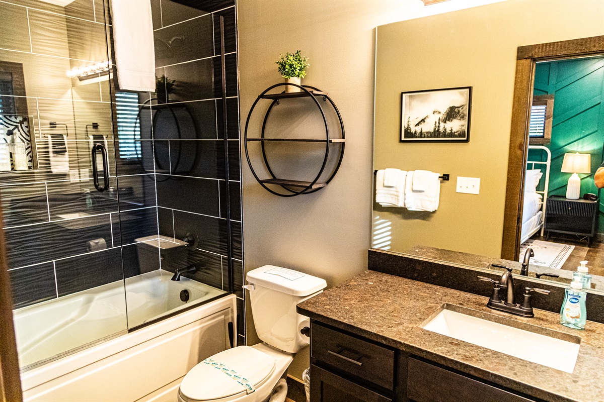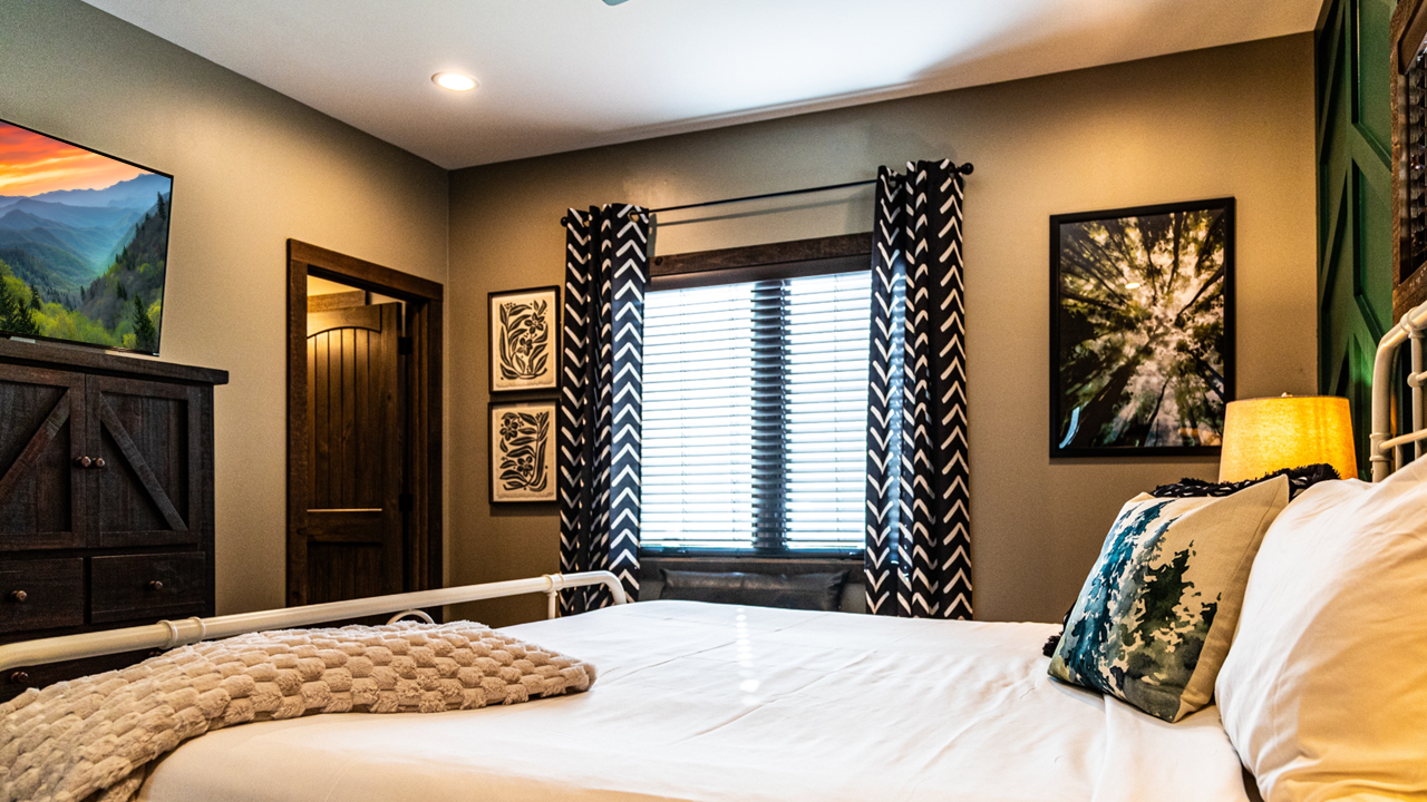 🛏️ 1 Bedroom with king bed that shares a bathroom with the game area