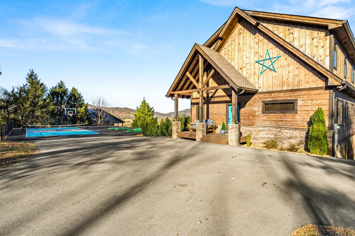 Gather, splash, and relax in this New, Stylish Cabin with amazing views! Luxurious open living space with rich amenities: indoor pool, game room, theater, hot tub, pickle ball court. BBQ Grill overlooking the incredible mountains. Enjoy roasting marshmallows at the firepit or sip your favorite beverage reflecting on the day. Experience nearby Pigeon Forge, Gatlinburg, and GSMNP. Adventure in nearby hiking trails, waterfalls, and attractions. Plenty of space to unwind and connect. Wi-Fi and smart tv's throughout.