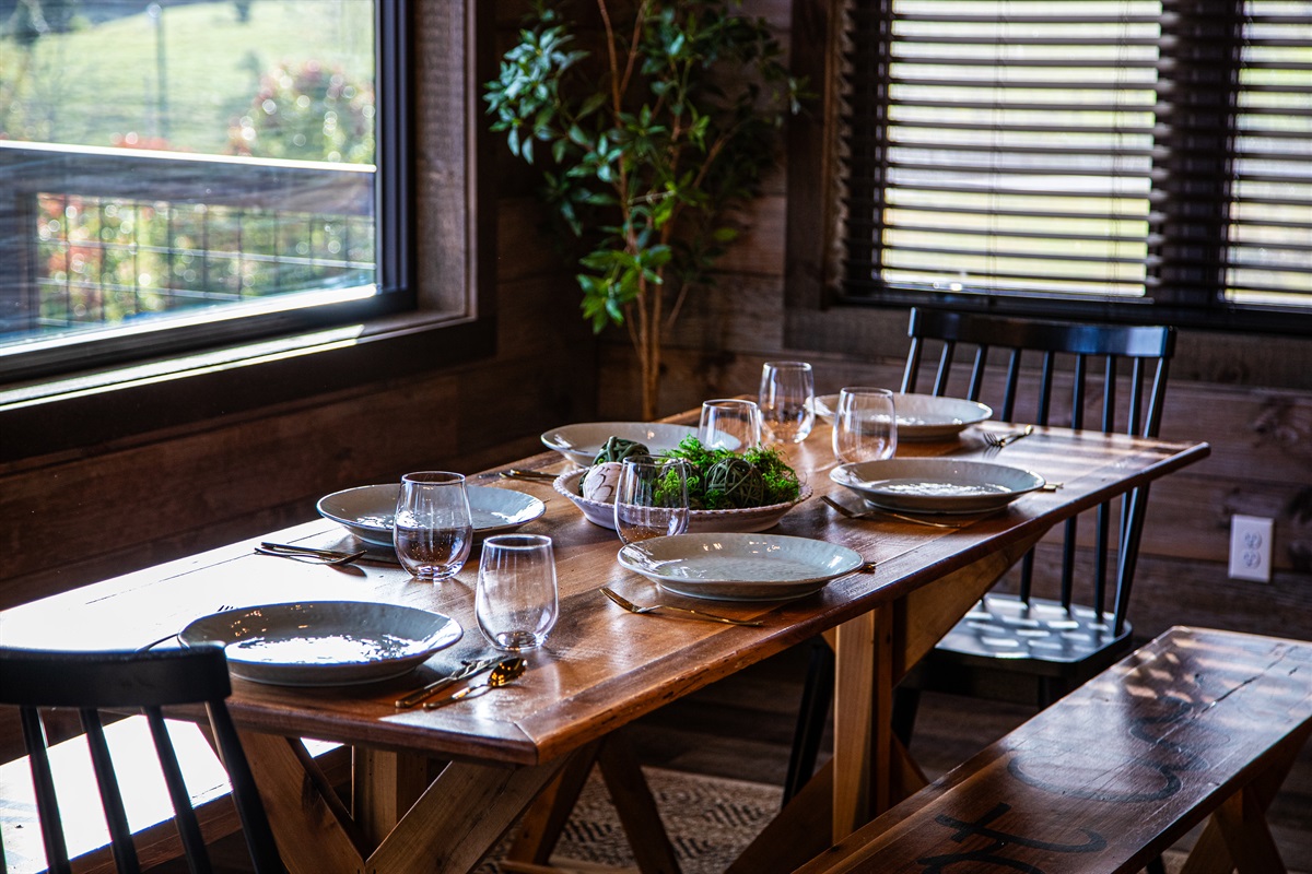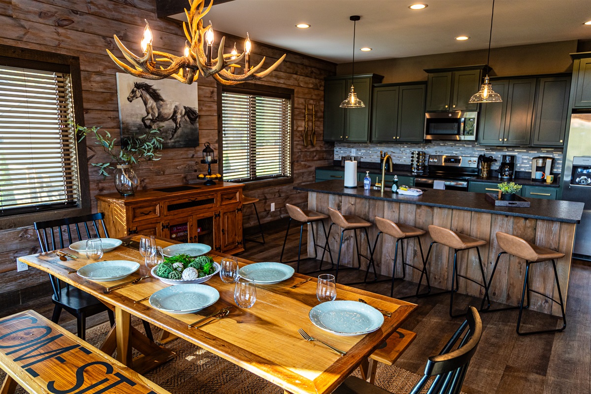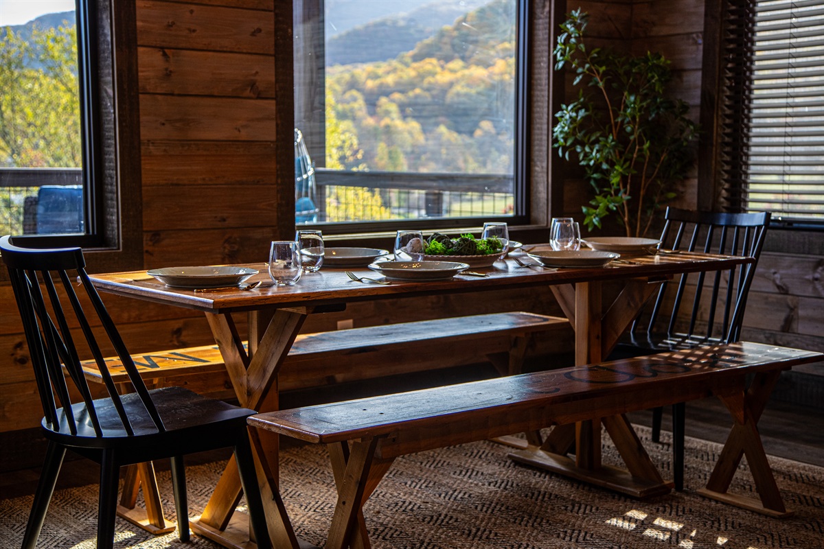 🍽️ Beautiful dining area with seating for 10 at the dining table and an additional 5 at the bar - with amazing mountain views