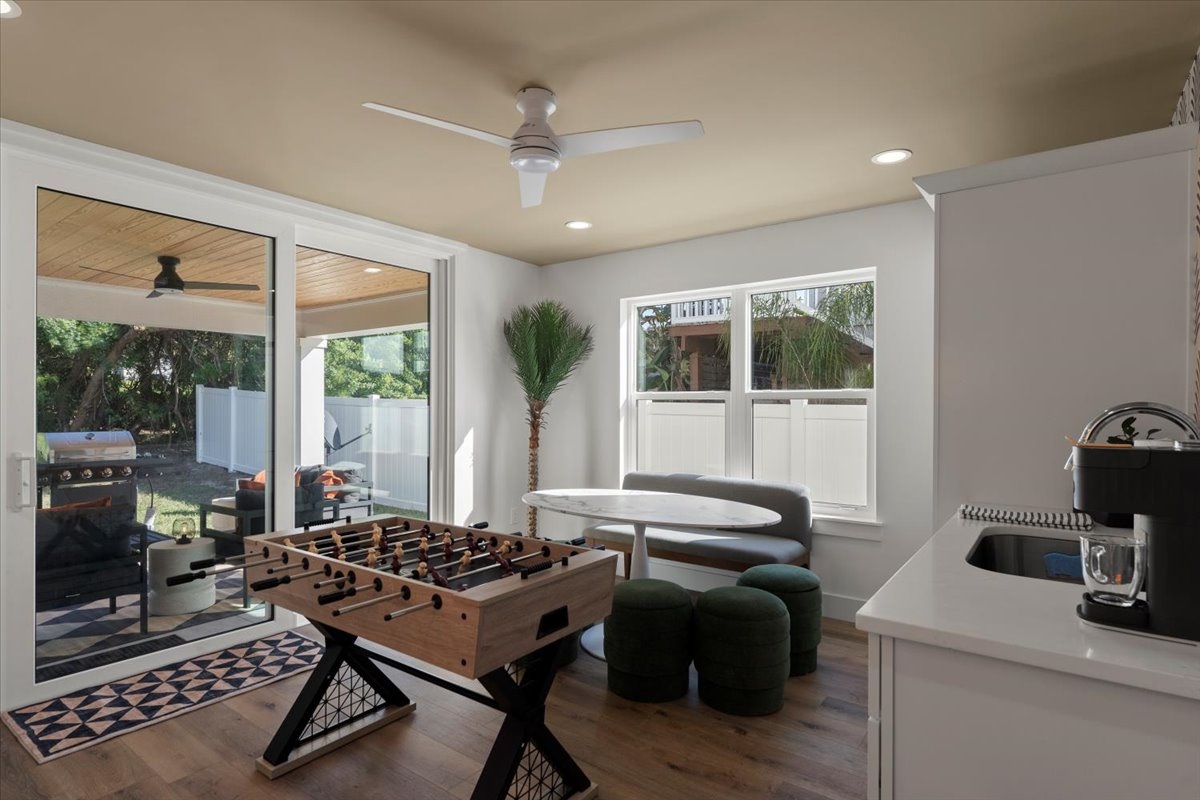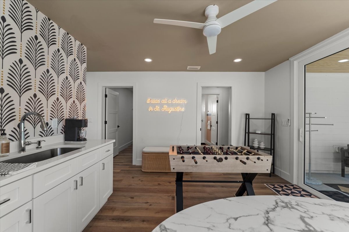 Welcome to Sand and Sunset, a brand-new luxury coastal home steps from St. Augustine Beach. Built in 2025, this modern retreat offers designer interiors, a chef’s kitchen, premium linens, and peaceful outdoor spaces. Enjoy two spacious primary suites one on each level plus a kitchenette with a coffee bar and thoughtful touches like sound-machine clocks in every bedroom. Perfect for upscale getaways.