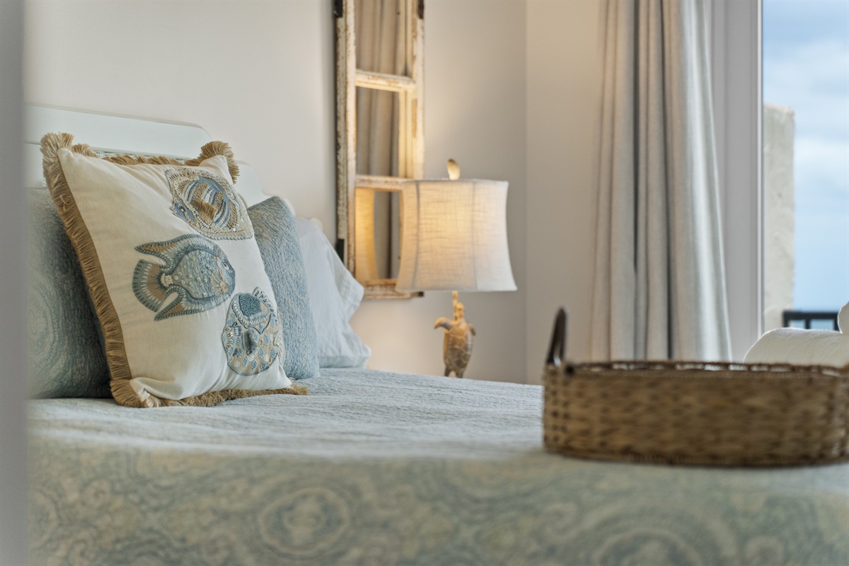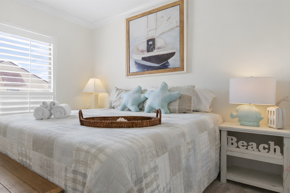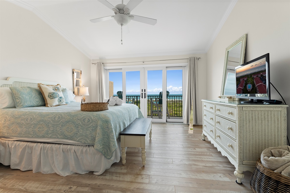• Primary Suite: King bed, ensuite bath, Smart TV, private balcony with sunrise views