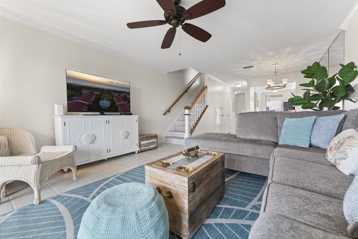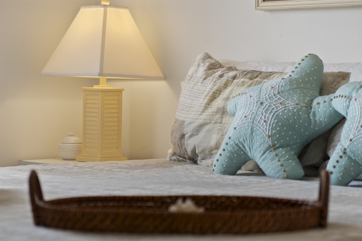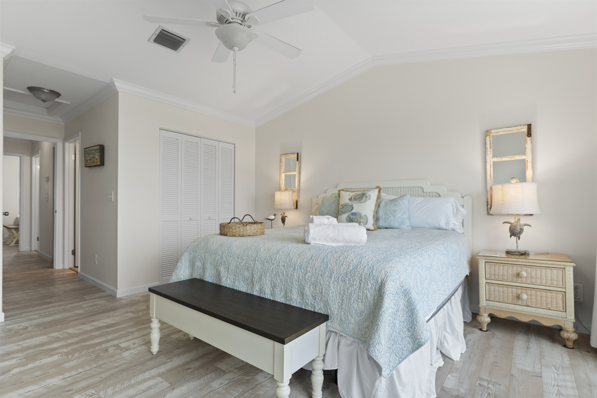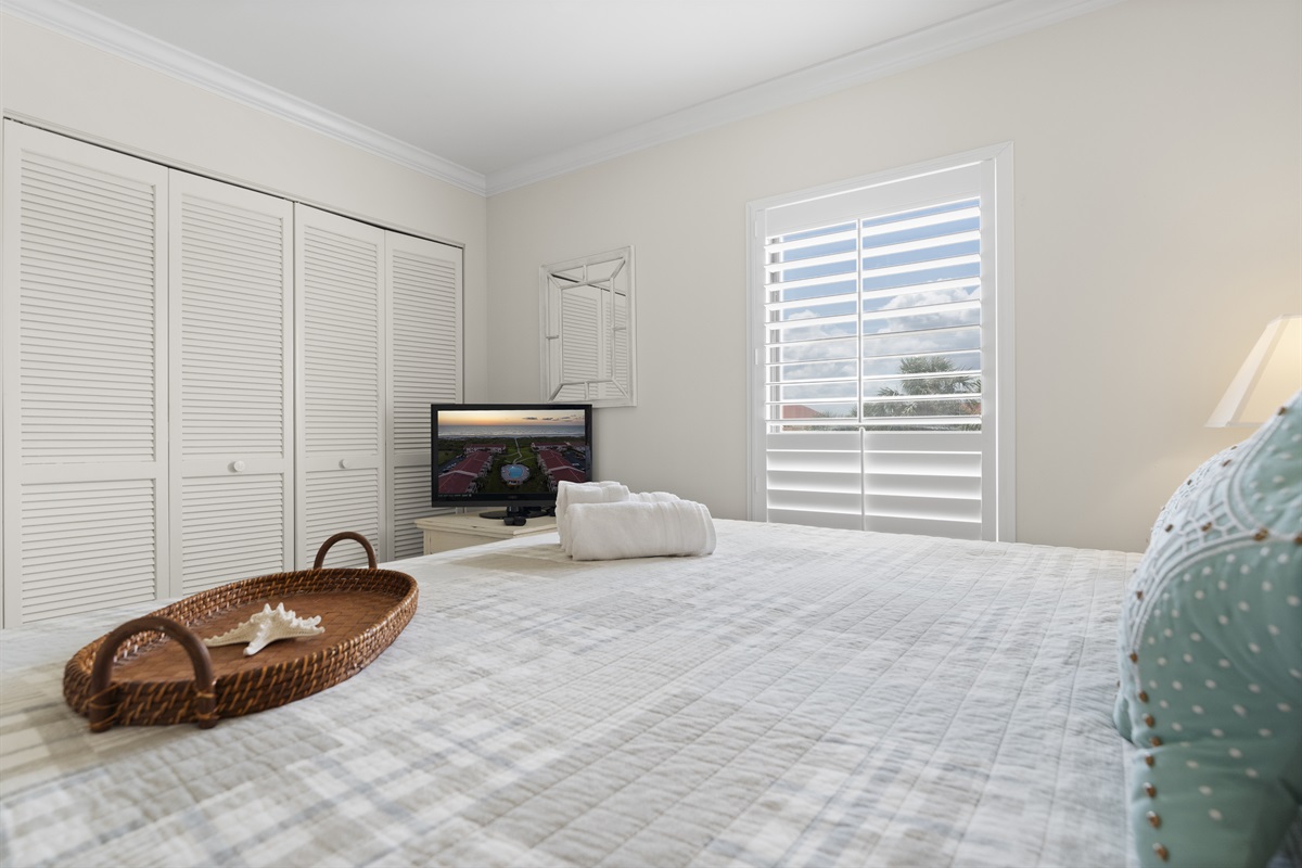 • Primary Suite: King bed, ensuite bath, Smart TV, private balcony with sunrise views