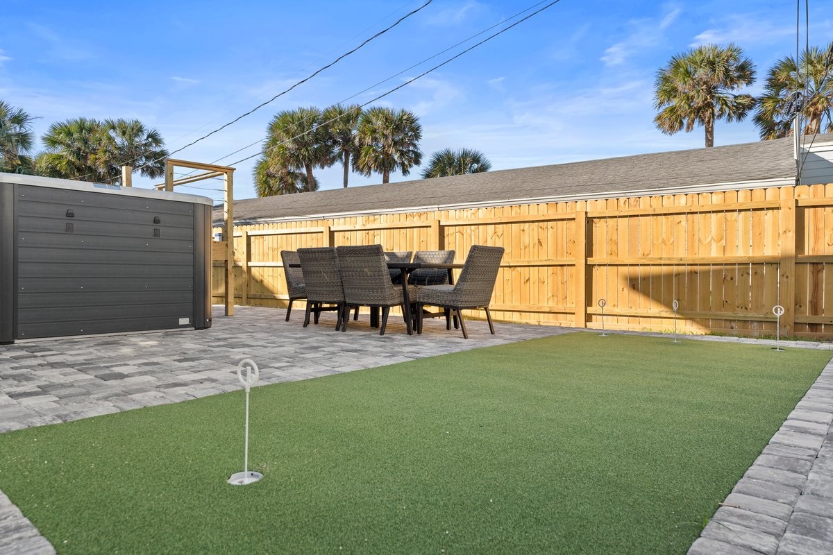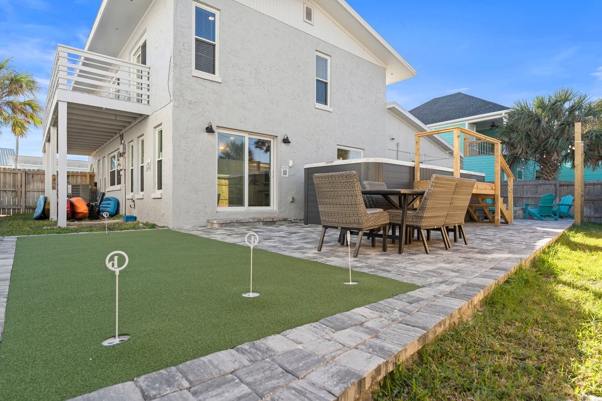Gather at your ultimate Vilano Beach getaway! Enjoy private beach access, a new heated swim spa + hot tub, lighthouse-themed arcade & theater, colorful coastal bedrooms, a kids’ bunk with tube slide, firepit, and backyard mini-golf. Just 6 minutes to Historic St. Augustine and walking distance to Publix, restaurants, and shops. Sleeps 14 with 5 bedrooms. Kayaks, paddleboards, fast Wi-Fi, and Florida-themed fun await!