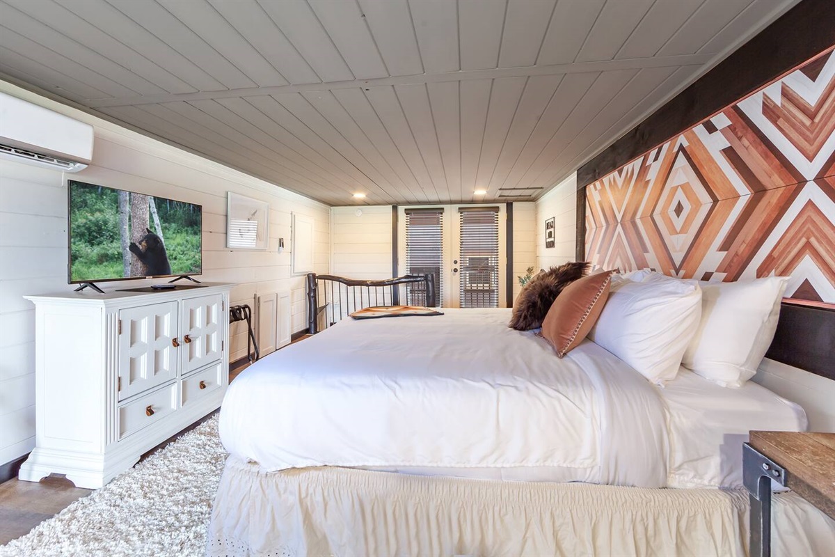 You may experience a fly over by our beautiful Canadian Geese that love our pond as well as the rabbits that love to play in our fields. This is a private peaceful family friendly community. Every guest has access to our covered pavilion and fire pit. Whether you stay to your self or join in other guests at the fire pit, you will LOVE the mountain views and the calming sounds of the babbling creek that flows beside your cabin.