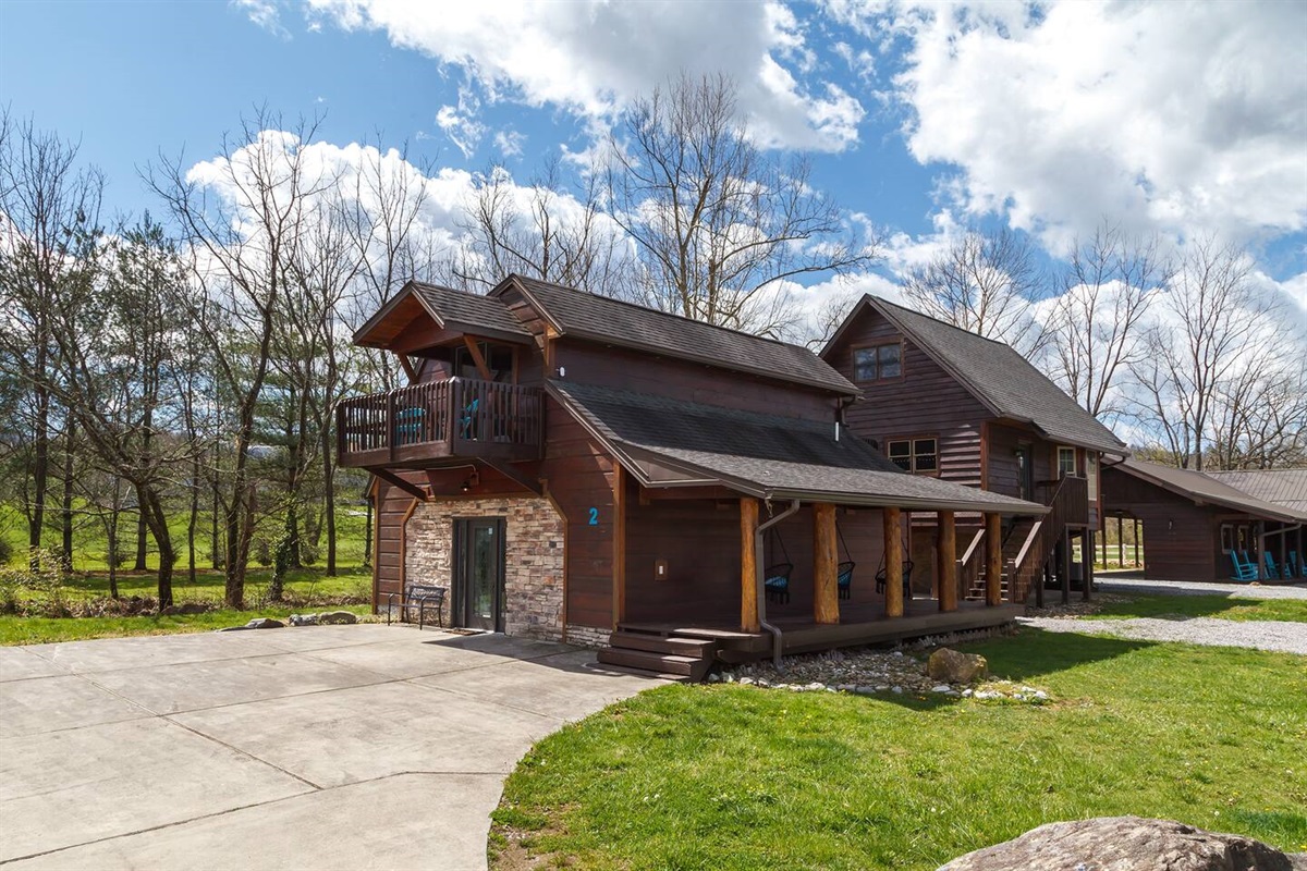 The main road coming into the property is paved. All driveways are level and accessible. Every cabin has its own parking.