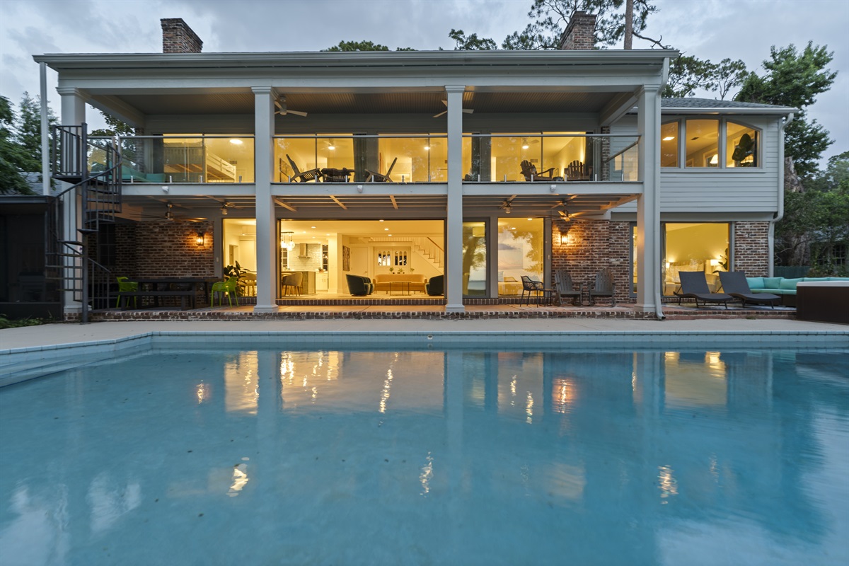 • Upper level: 4 guest bedrooms (see above), two full baths, and a river-view lounge + game table