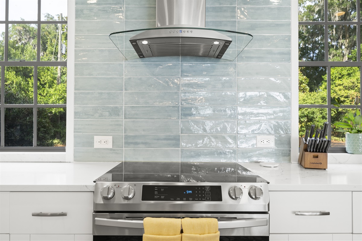 • Chef’s kitchen: 36"+ range/ovens, large fridge, dishwasher, microwave, giant island w/ bar seating
