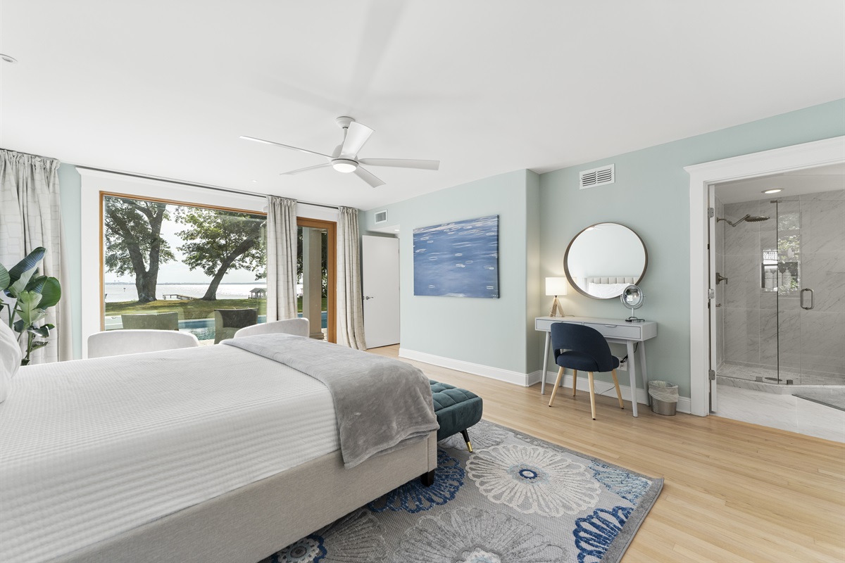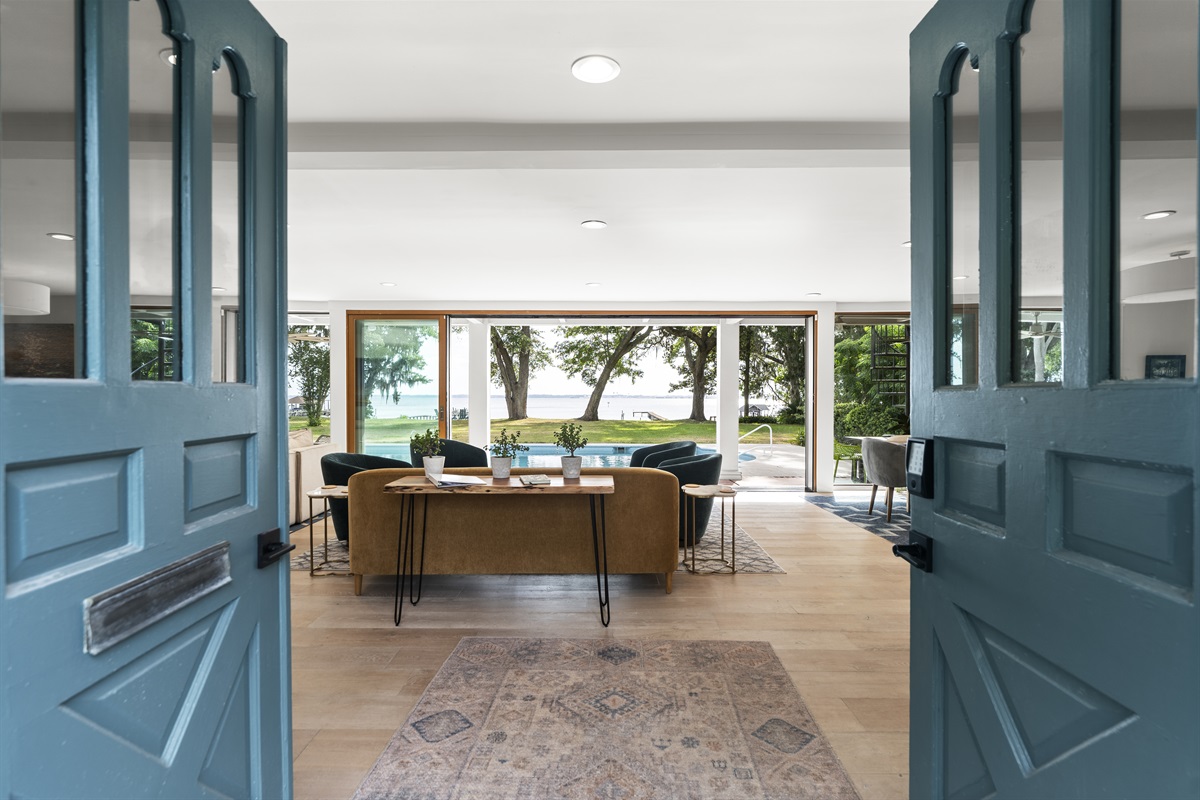 • Grand great room with dual gathering zones (river-view seating + cozy fireplace nook)