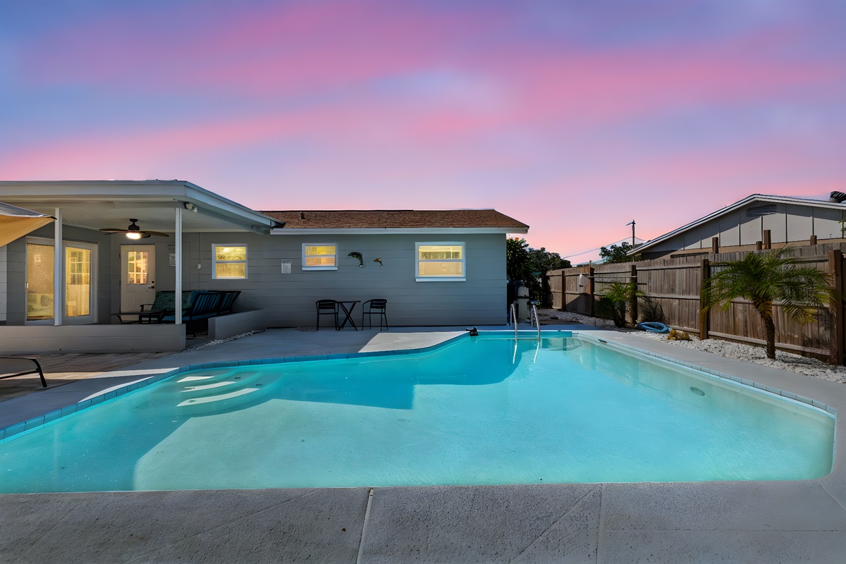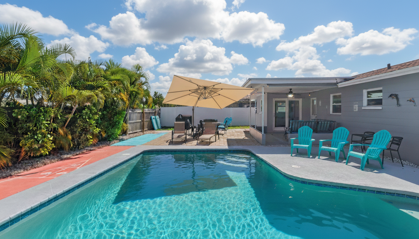Turtle Trail is a beautifully updated, pet-friendly pool home just minutes from Indian Rocks Beach and John’s Pass Village. Enjoy a fully fenced yard, private heated pool, game room, shuffleboard court, and open living space perfect for families, couples, and friends! With a stocked kitchen, beach gear, countless entertainment options, and high-speed Wi-Fi, this Gulf Coast retreat has everything you need for a relaxing Florida escape.