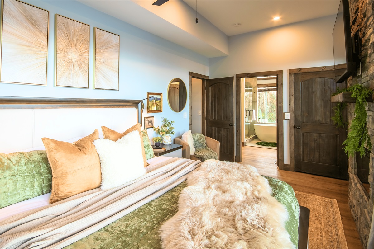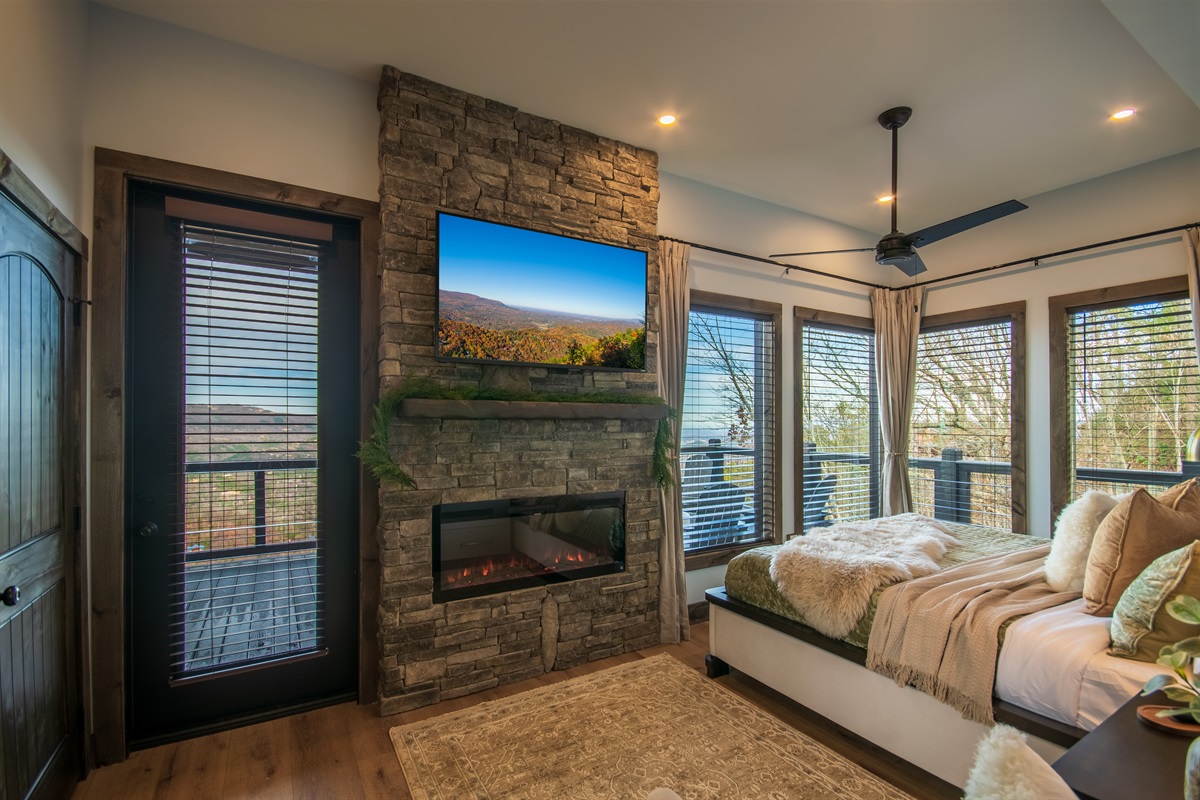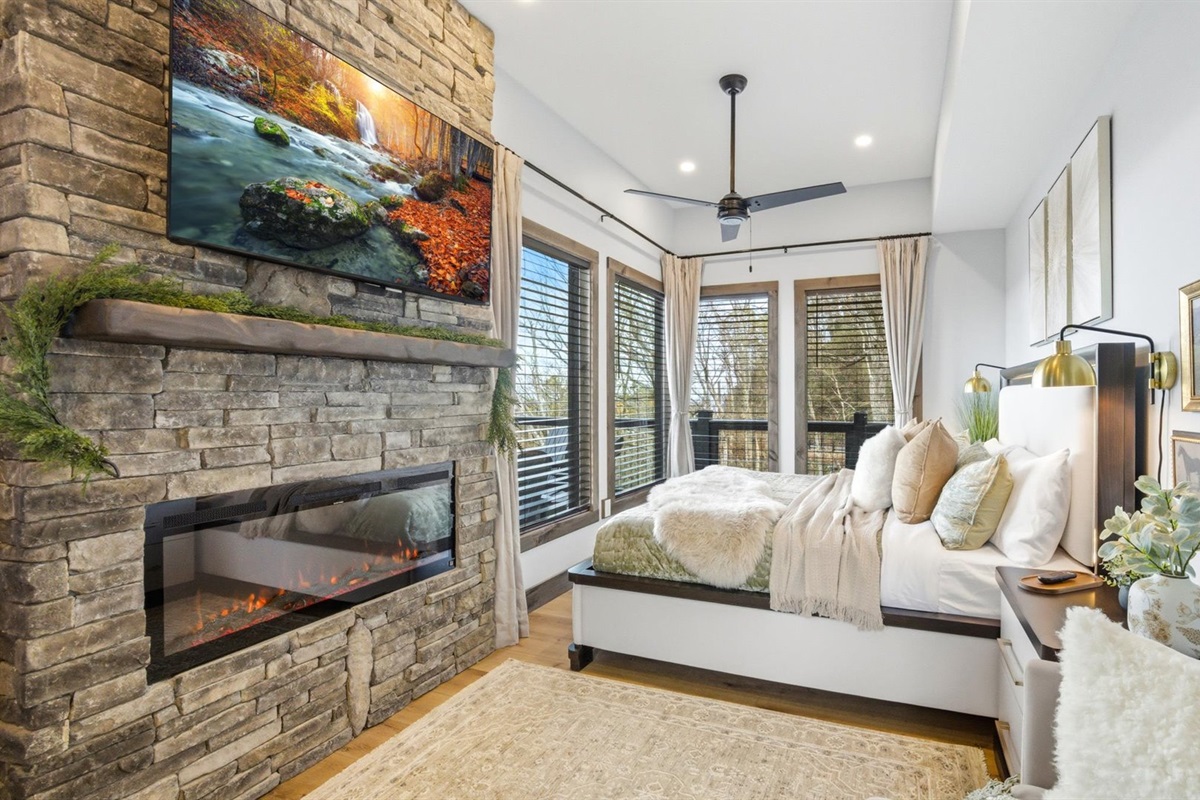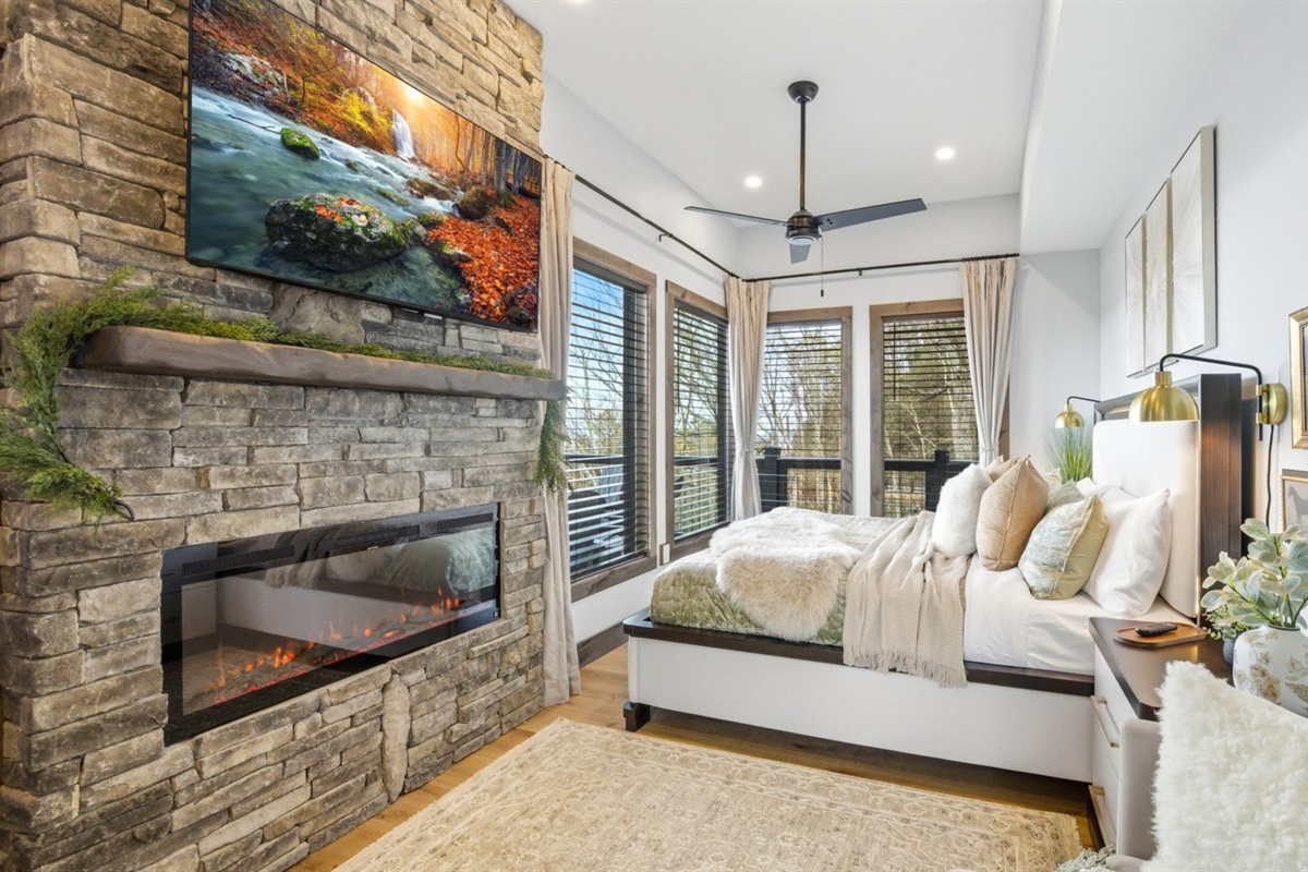 🛏️ King primary bedroom w/ fireplace & Smart TV